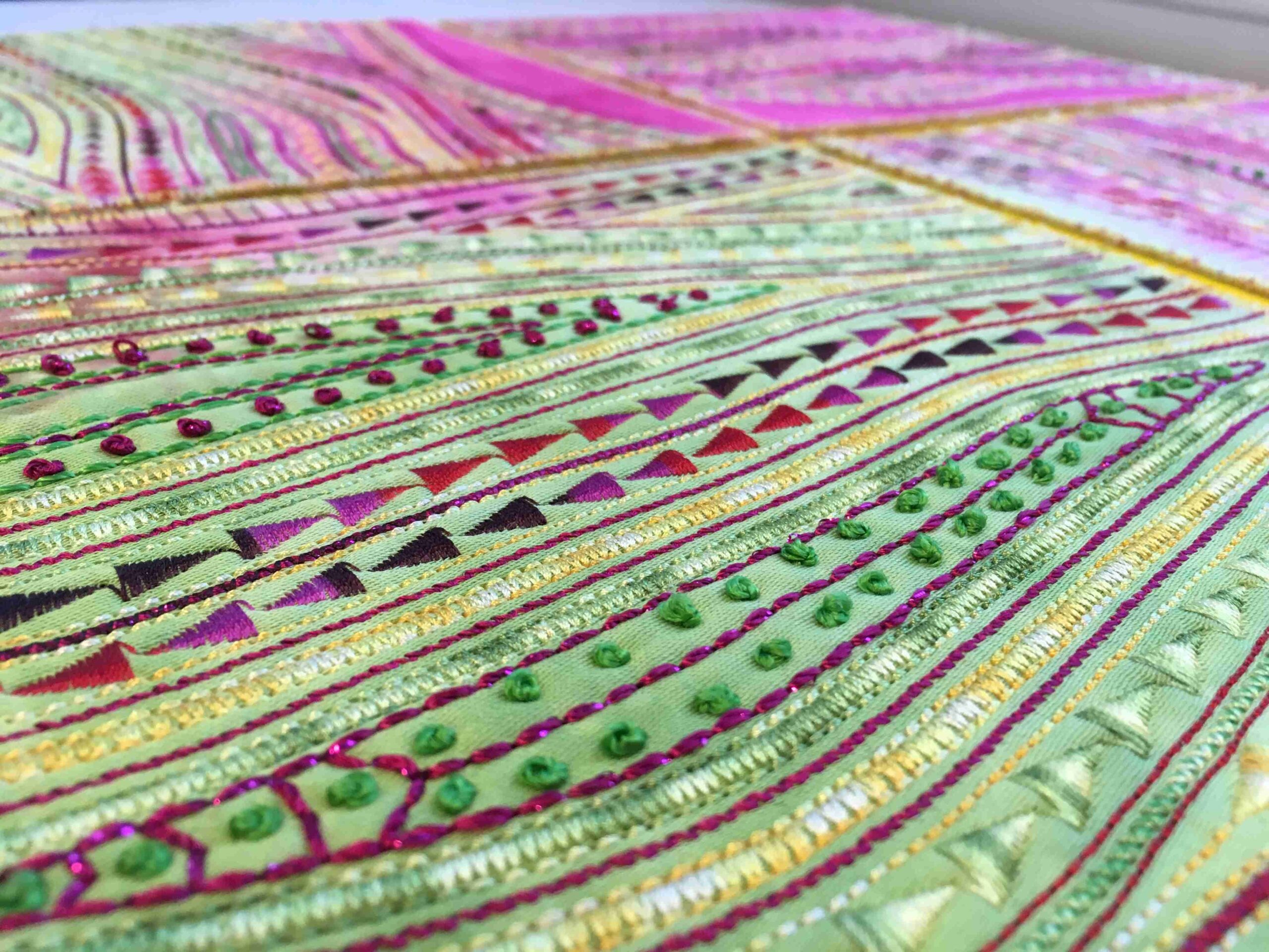 Je probeert verschillende soorten garens, steken en verrassende combinaties. Voeg kleur, textuur en glans toe aan je stof met siersteken, satijnsteken, couching en meer.